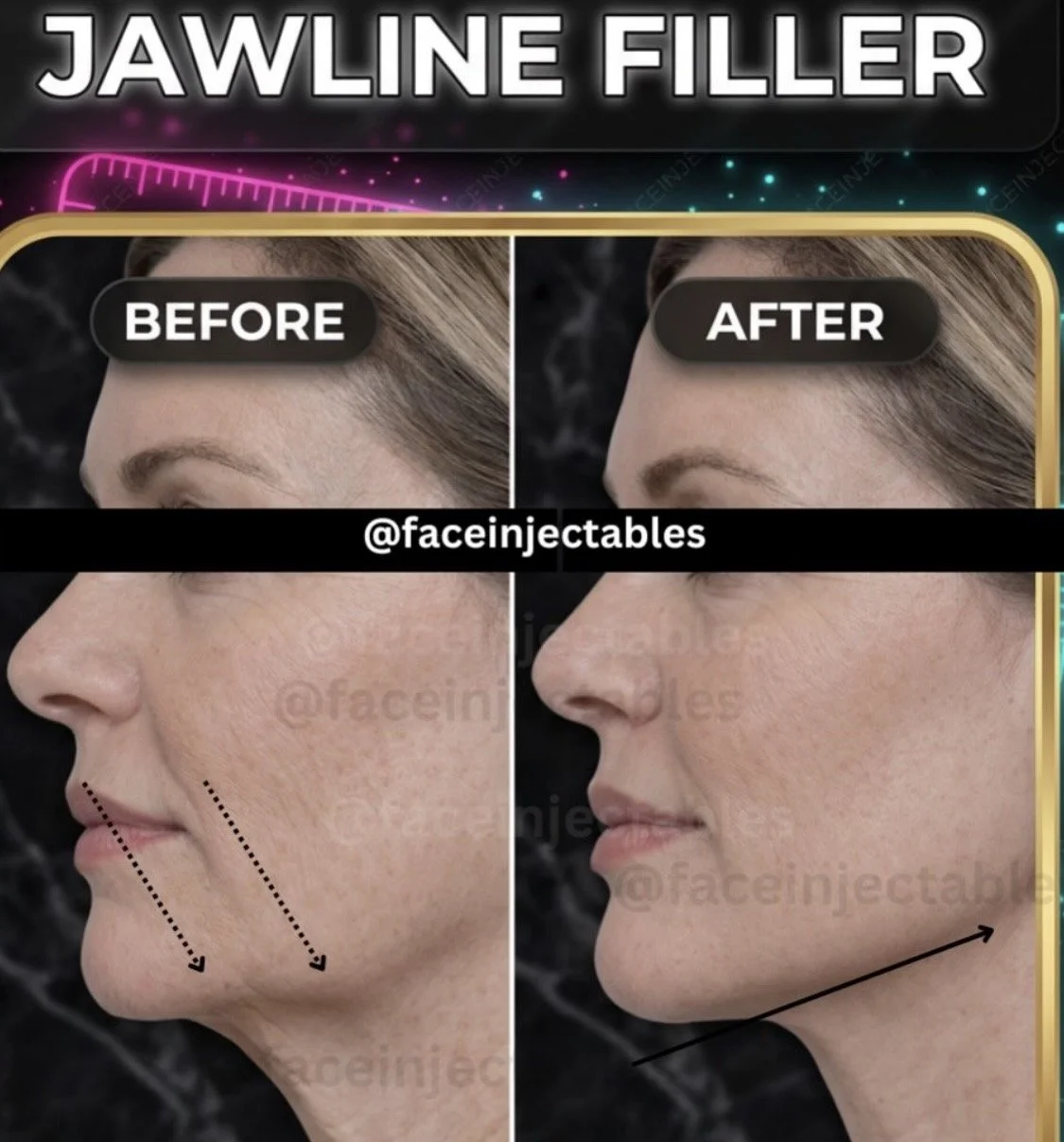 Real before and after results for lips, chin, jawline, cheeks, under-eyes, and facial balancing. Browse the photos below, then visit the treatment page for full details and booking.